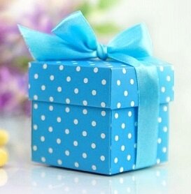 blauw doosje karton met stippen